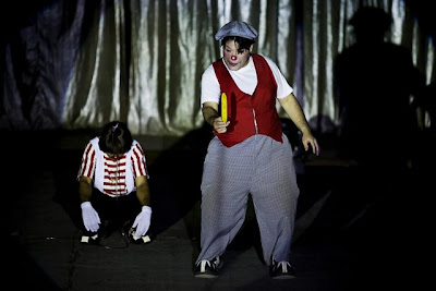 Mas eles são geniais. É impossível não lembrar da infância ao vê-los contando piadas num portunhol rasgado e dando tabefes e caneladas uns nos outros no auge do espetáculo. Nota-se a felicidade das crianças despreocupadas com as roupas remendadas, os rostos pintados com batom velho e as botinas gastas. Eles sabem fazer rir. E divertindo os outros vão tocando a vida, como quem pouco caso faz das dificuldades que passam.